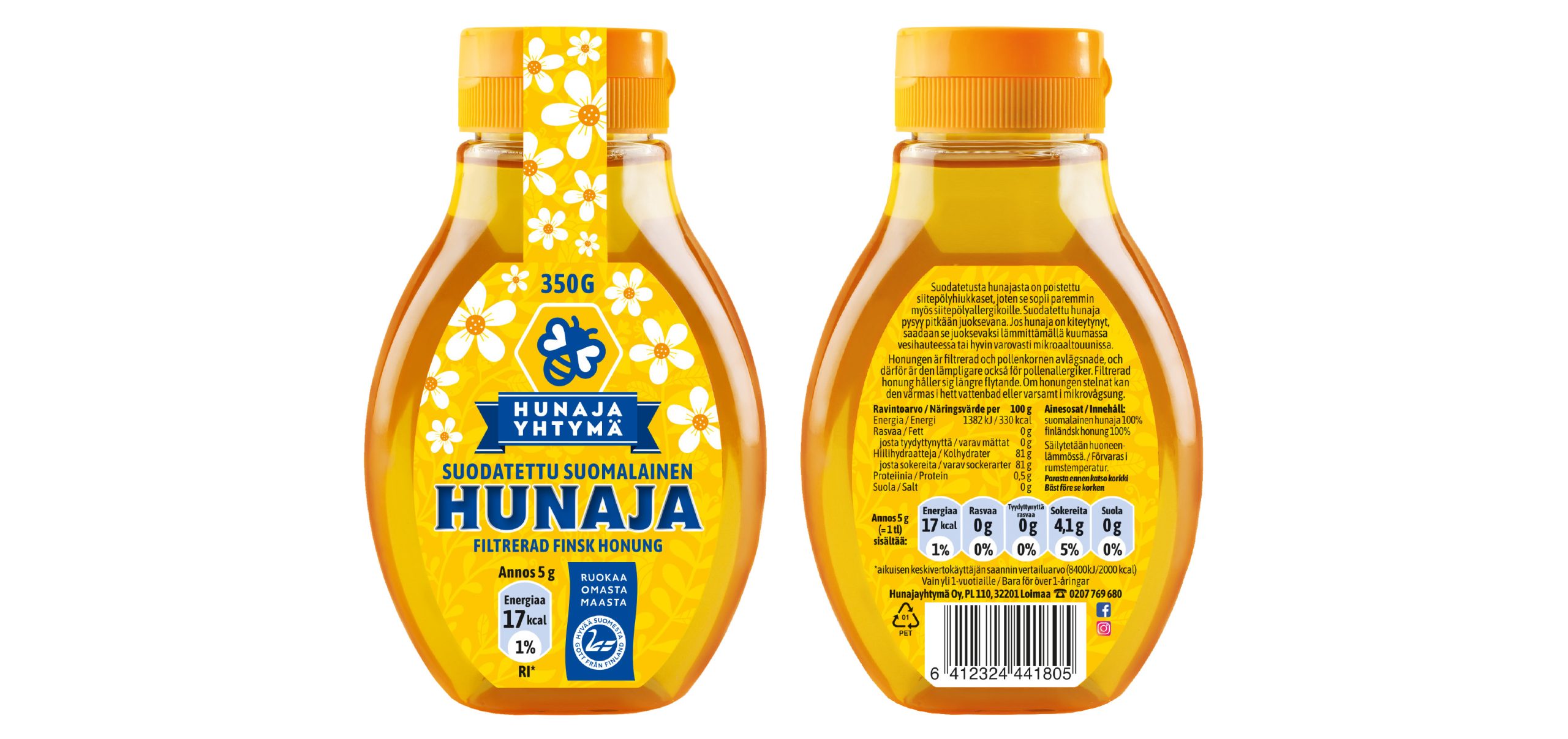 Hunajayhtymän suodatetussa hunajassa on ainutlaatuinen pullo. Pullo on varustettu sulkijamekanismilla, joka estää hunajan valumisen käytön jälkeen. Tähän pulloon pakattu hunaja ei tahmaa eikä sotke ja voit huoletta pakata sen mukaan eväsretkille ja matkoille.