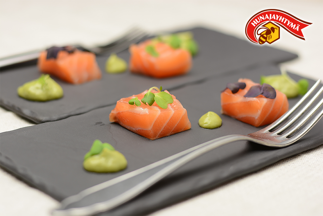 Keitä vedestä ja suolasta liemi, anna jäähtyä, lisää hunaja haaleaan liemeen. Pane kalafileet astiaan, murskattua pippuria ja tilliä päälle. Kaada jäähtynyt liemi fileiden päälle. Anna maustua jääkaapissa 1 vuorokausi. Leikkaa tarjolle ohuiksi viipaleiksi. Tarjoile hunaja-kermaviili-avokado –kastikkeen kera.