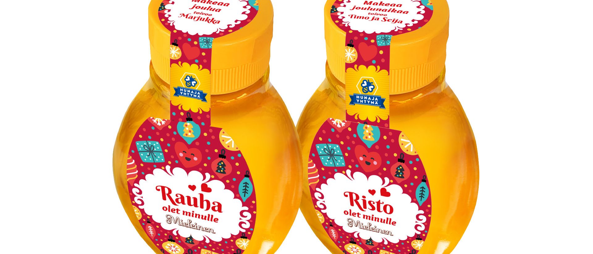 Joulun mieleisin lahja on täällä! Nimikoidut hunajatuotteet ovat nousseet suureen suosioon ja omalla nimellä etiketöidyt hunajapullot ovat ilahduttaneet jo satoja kuluttajia. Joulusesonkiin suunniteltu uniikki pullo on se vastuullisempi joulupullo ja varmasti saajaansa ilahduttava lahjaidea.